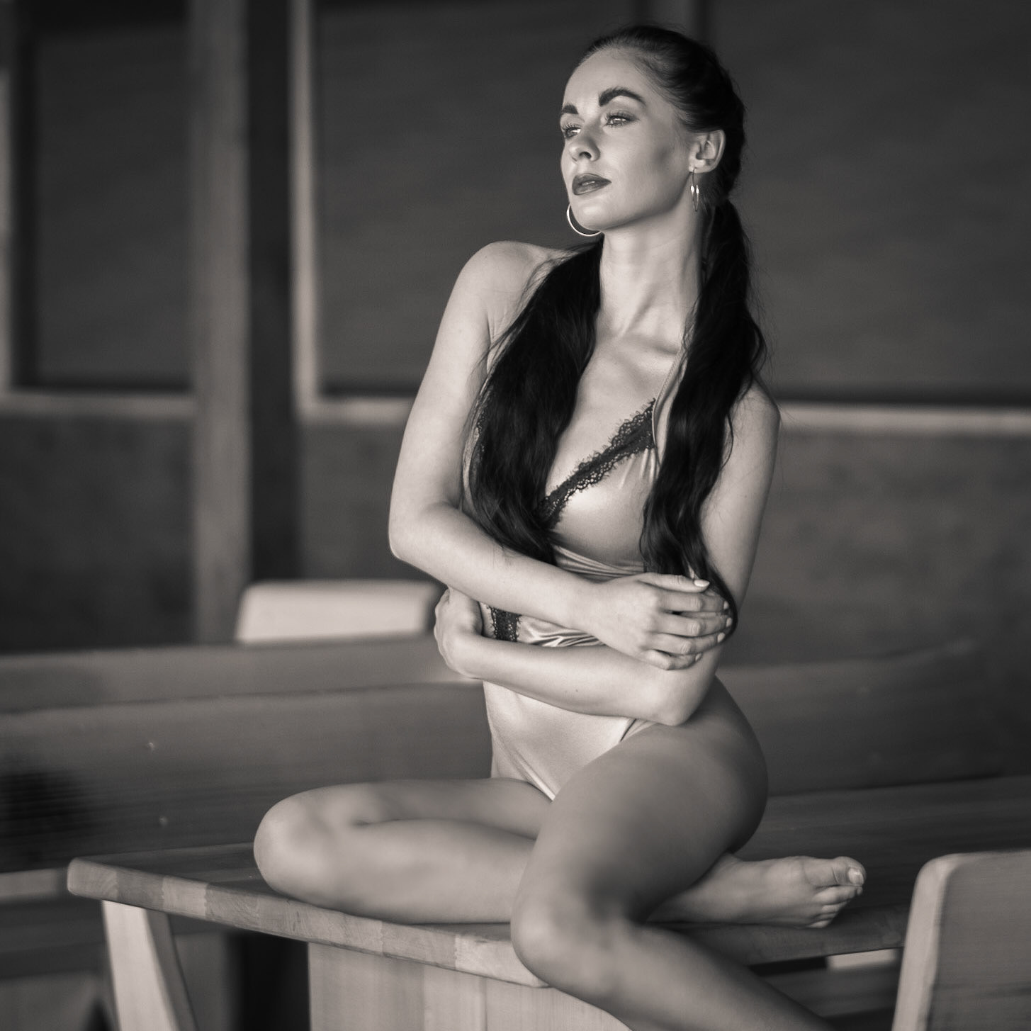 Krásná Iši v nádherném přirozeném světle v plážovém baru.